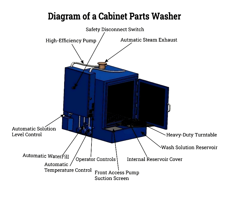 Parts washers are specialized industrial devices designed to clean various components by removing contaminants like grit, oil, grease, paint, and other residues. These machines accommodate parts of different sizes, from small millimeter-sized pieces to large, intricate instruments. They perform cleaning, degreasing, and drying operations to prepare parts for surface treatments, assembly, inspection, or shipping.