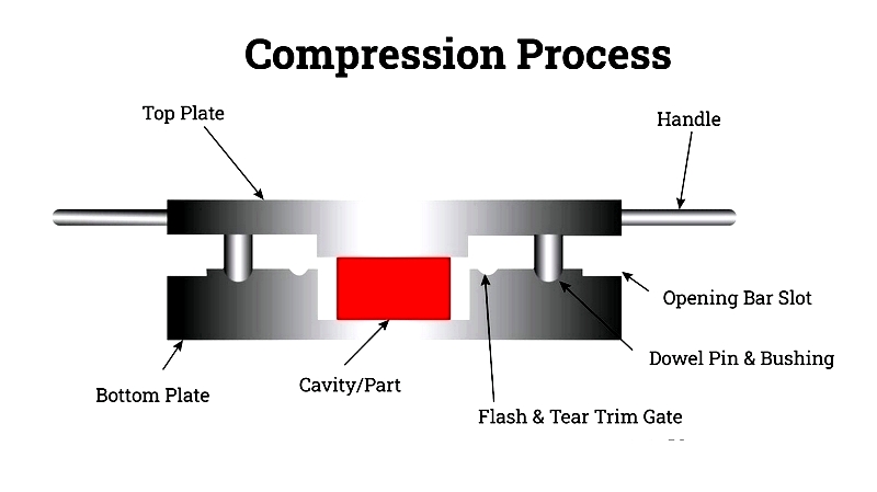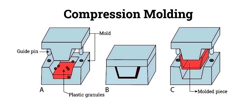 Compression molding accommodates various materials, resulting in different shapes, sizes, and compositions.