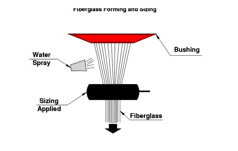 Fiberization transforms molten glass into fibers through extrusion and attenuation. Molten glass passes through platinum/rhodium alloy bushings, cooled by water jets to create uniformly sized fibers optimized for resin reinforcement.