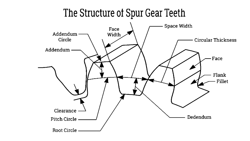 Fillet Radius - Curved transition at tooth base where stress concentrates.