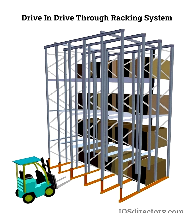 These high-density systems allow forklifts to drive directly into storage lanes, eliminating internal aisles. Drive-in racks (LIFO) have single access points, while drive-through racks (FIFO) offer dual access. Commonly used in cold storage and food processing, these racks are ideal for bulk storage with limited stock rotation.