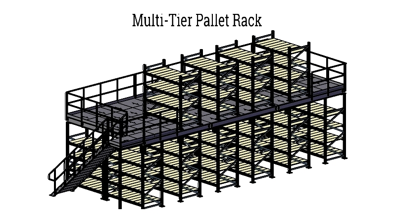 Multi-tier systems maximize vertical space in high-bay facilities with integrated shelving and access walkways. Suitable for small parts, pharmaceuticals, and documents, these racks support order picking and inventory control with clear labeling. While not designed for upper-level forklift access, they offer excellent load stability and can be customized for hand-loaded operations.