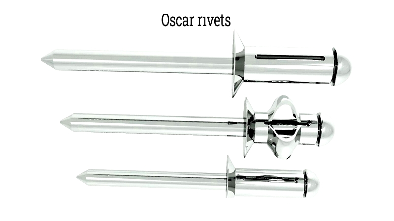 - Oscar rivet: Split shafts for better retention