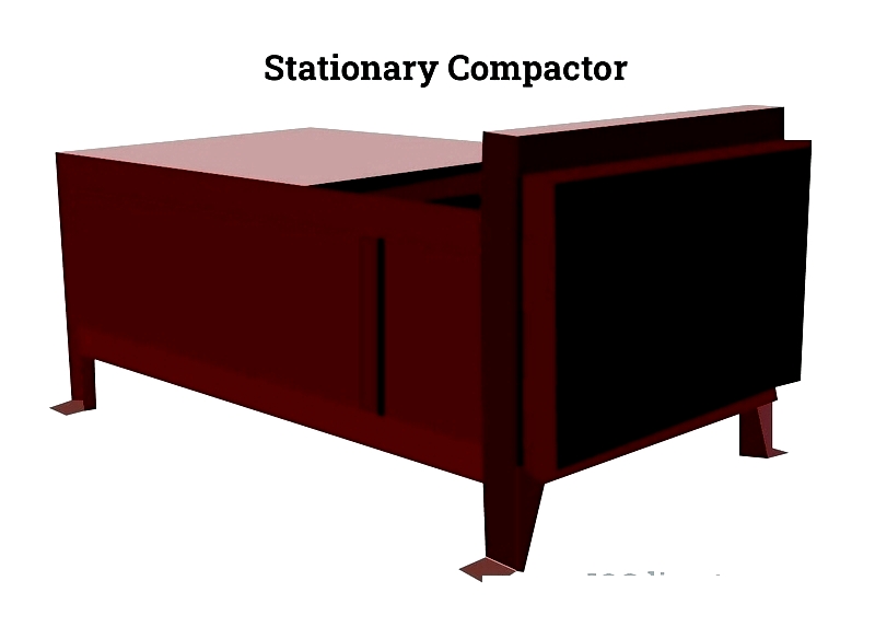 Stationary compactors are permanent installations for dry waste like cardboard and plastics. They optimize recycling and reduce haul frequency. Waste can be deposited manually or via conveyors, with roll-off containers swapped as needed.