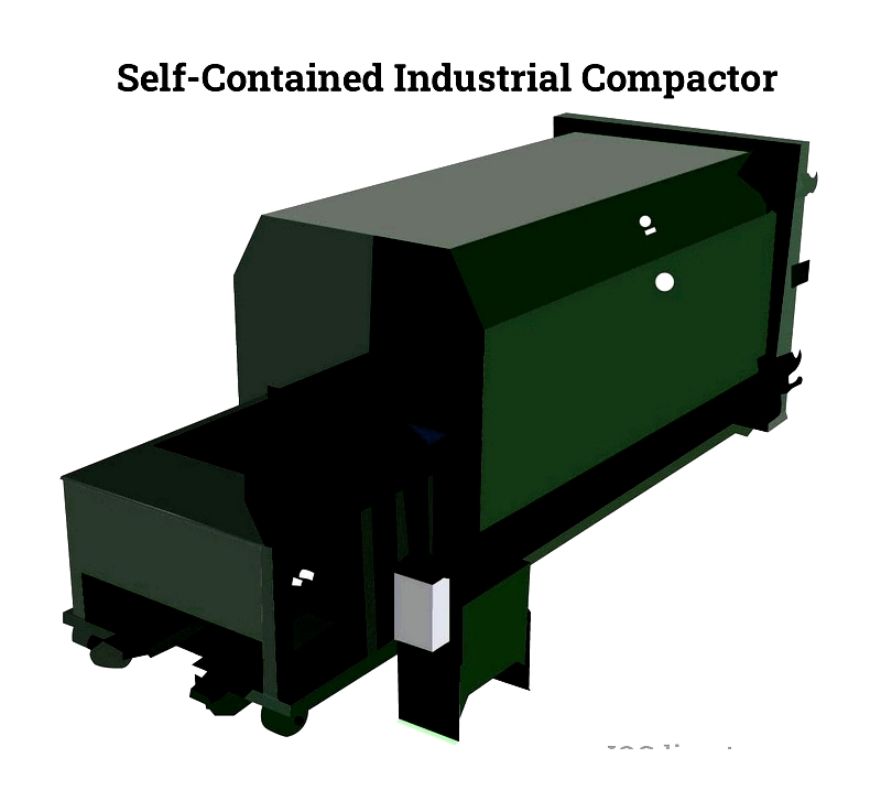 Self-contained compactors manage wet waste and liquids, preventing leaks and odors. Common in supermarkets and hospitals, they combine the compaction chamber and container for easy transport. Separate power packs enhance serviceability.