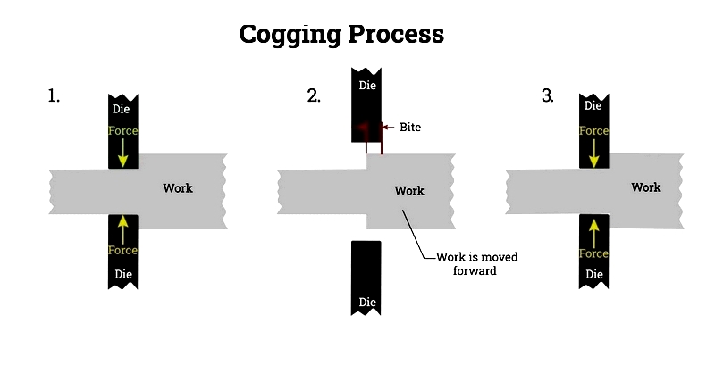 - Cogging – Reduces billet thickness while increasing length, preparing material for further processing like closed die forging.