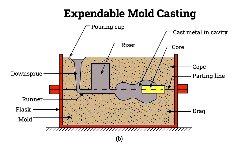 This includes sand, plastic, plaster, shell, and investment moldings, using temporary molds for complex shapes and prototypes. These methods are ideal for engineering parts and custom metalwork.