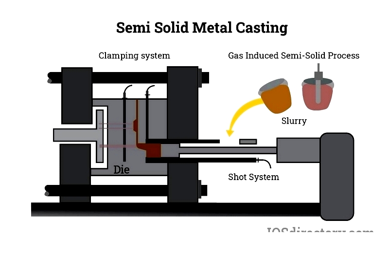 This hybrid method uses partially solid metal to reduce porosity, improving strength and uniformity. It's ideal for automotive and aerospace components.