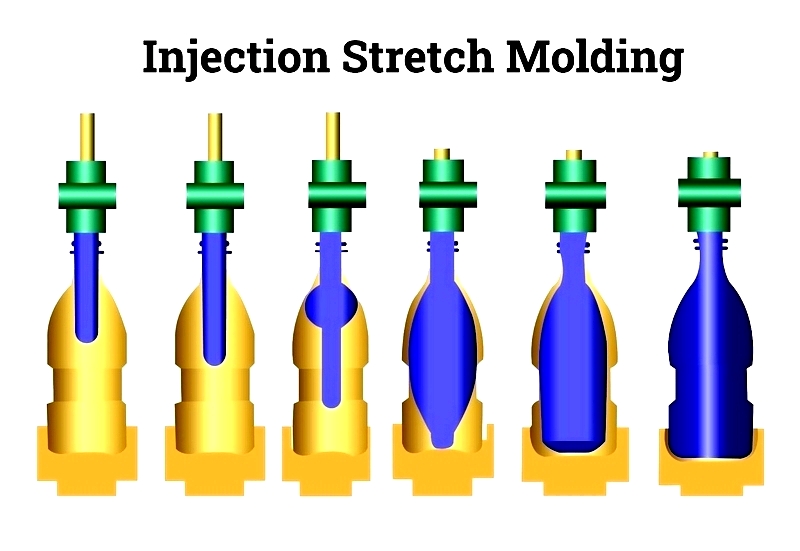 Builds on injection blow molding by biaxially stretching the preform to improve gas barrier, rigidity, and strength while reducing weight.